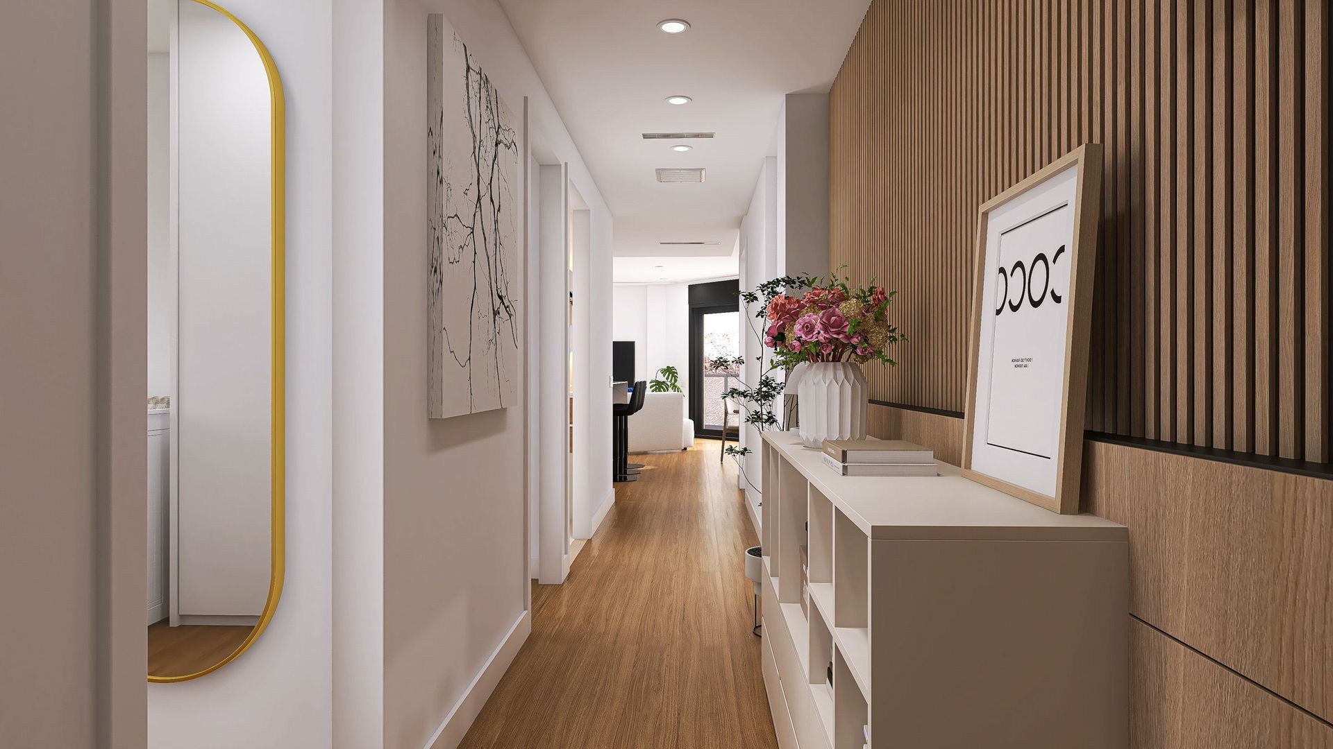 A partir de los datos recogidos y de lo definido en la etapa anterior, desarrollamos el diseño completo en 3D, seleccionando materiales, texturas y soluciones a medida para optimizar cada metro cuadrado.